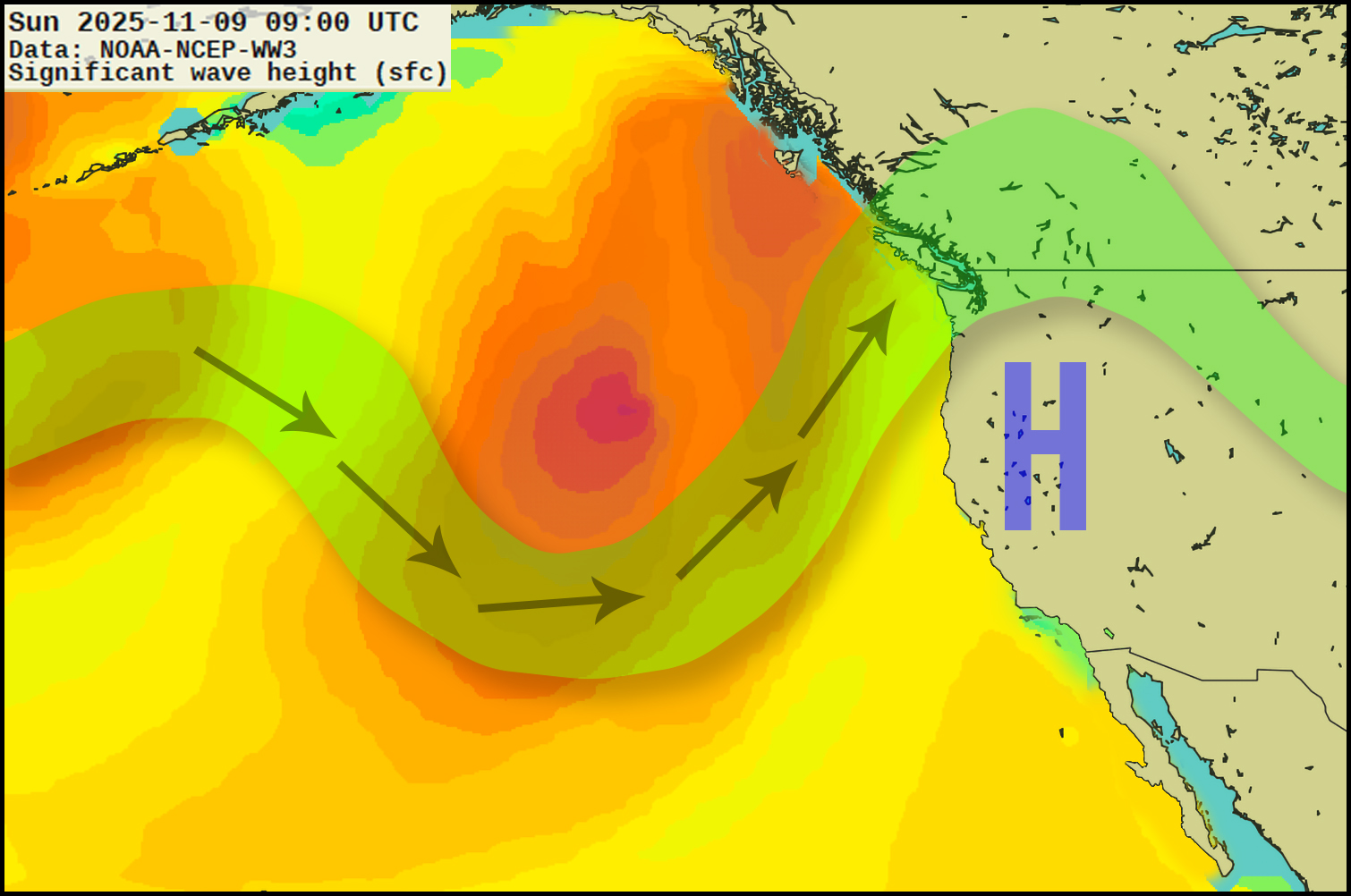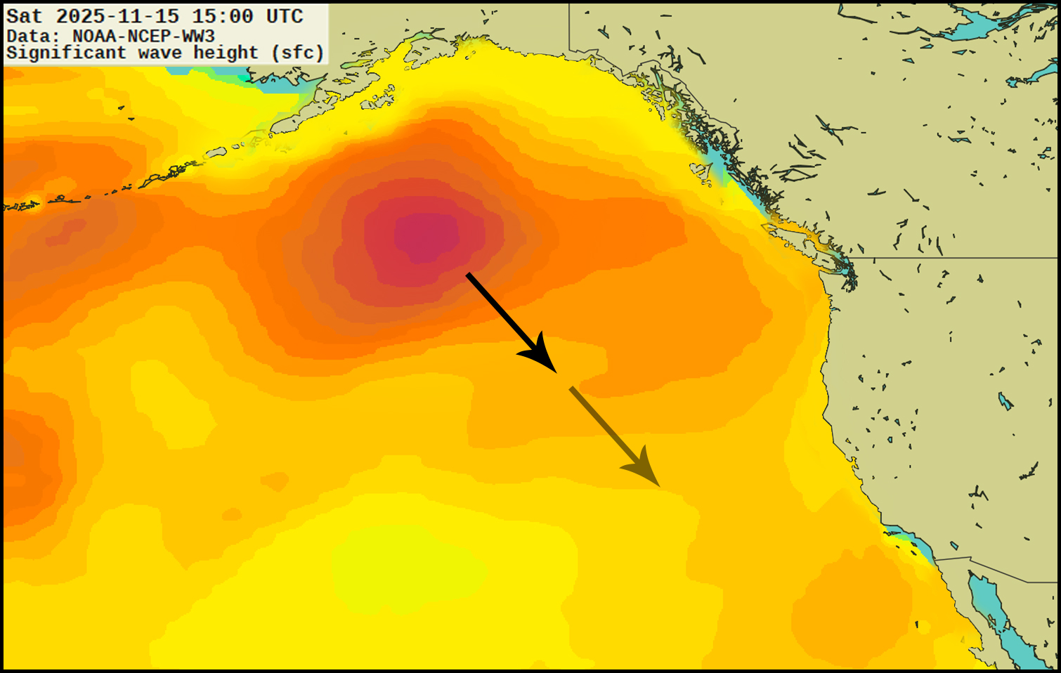 Taking a southward dive toward the SoCal latitude, this holds potential for head high sets at west facing breaks Tuesday the 18th, angled from 315° and periods 15-16 seconds. This is on the 4-day models so I should be able to call it in my next report (Thursday).