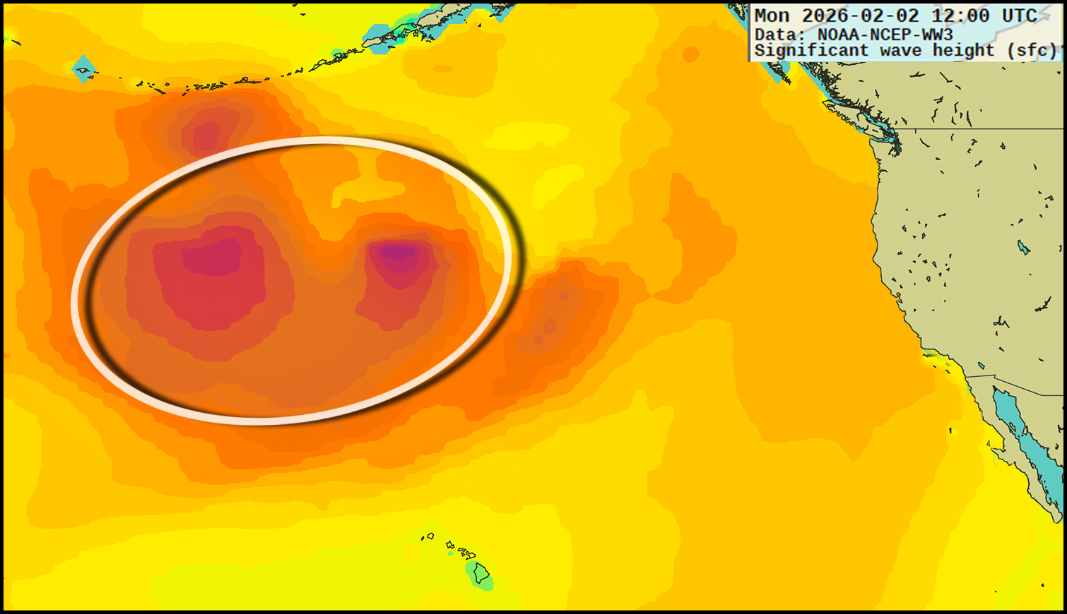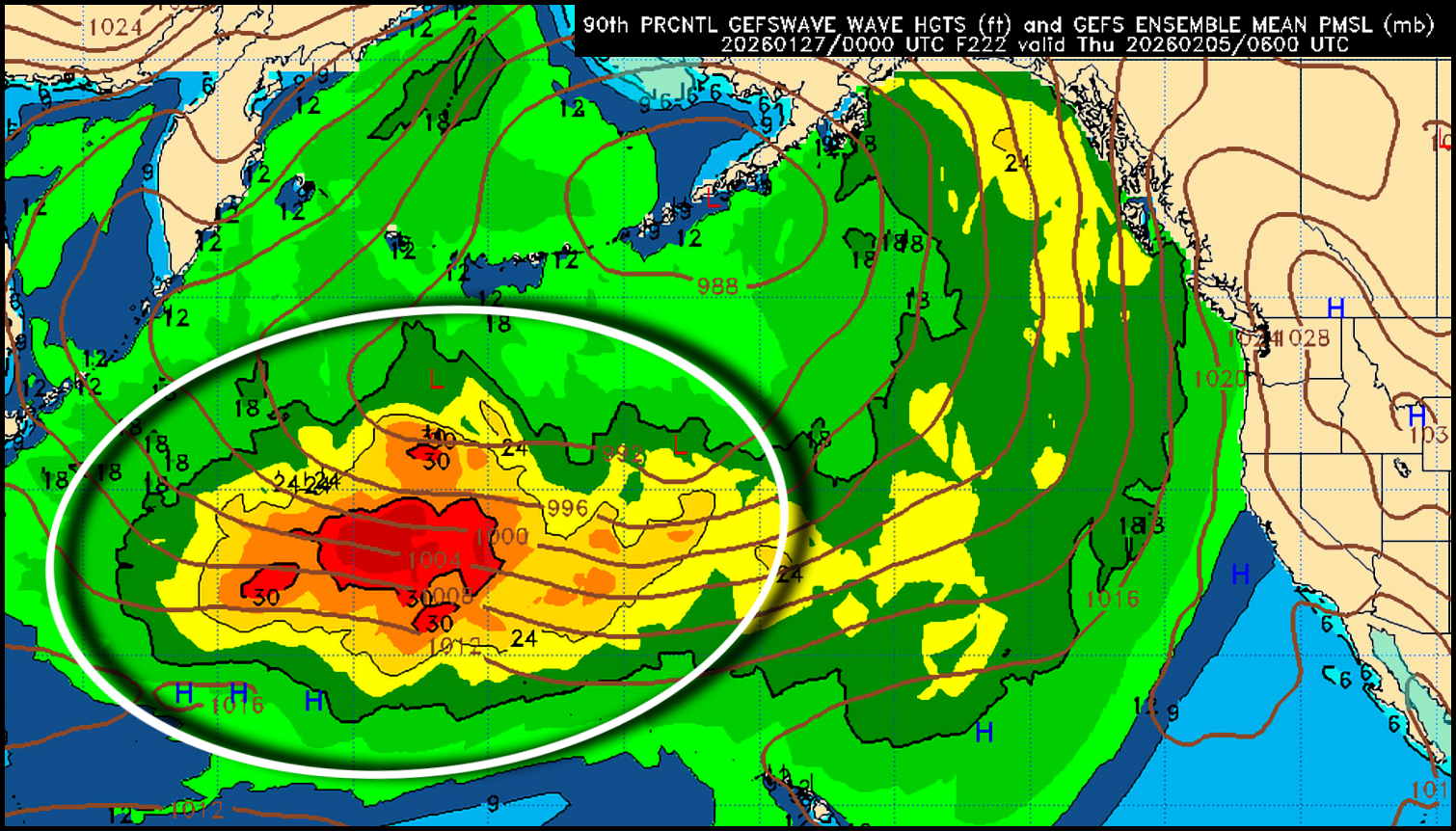 That low latitude jetstream (green) is running uninterrupted from the Western Pacific across almost the entirety of the North Pacific. This allows swell-making storms spinning off Japan to grow along the way while directing their wave energy at SoCal. On the last leg of the North Pacific crossing, high pressure over the American West thwarts the storm-track to the north, keeping rain and winds away from SoCal, leaving us with clean ground swells with good conditions. But, there will be one wrench in the works: a radical tidal swing later this week with very deep early morning highs that'll go extremely negative in the afternoon. Those deep AM highs could slow down many spots, and the prime mid-tide sessions will have a shorter than normal window. Tidal depths will also recede in the morning, lacking the benefit from tidal push. Nevertheless, there's a slew of clean NW ground swells headed our way — it's just that session timing may be tricky to optimize them.