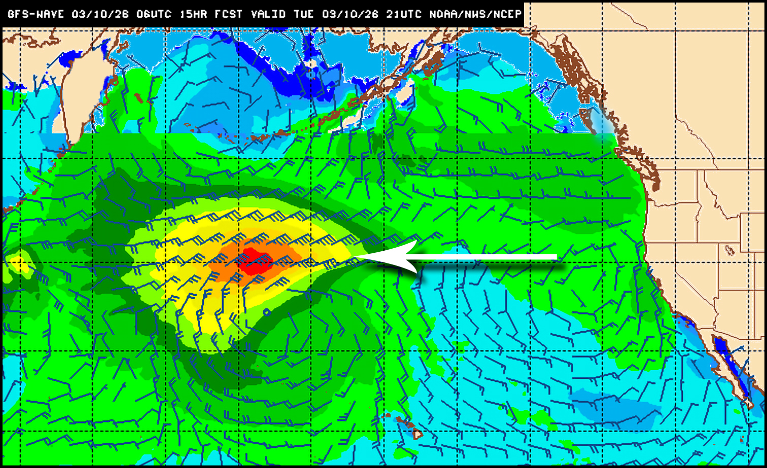 That's still a ways out on the long range but models have been consistent with this the past few days. So far, this looks like a head high+ wind swell for west facing breaks Saturday the 21st and Sunday the 22nd, angled from 300°+ with periods 10-11 seconds. I'll see how this progresses over the next few days.
