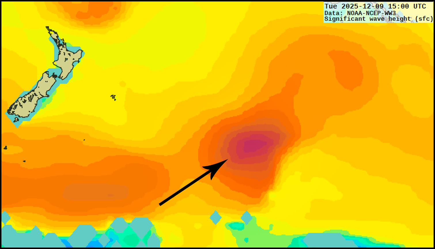 Based on the 7-day models, that could produce waist to chest high waves at south facing breaks, angled from 200° with periods 16 seconds. Normally that'd go unnoticed as NW wrap from bigger NorthPac swells would overshadow that this time of year. But there are many days on the long range right now that look lackluster for NW swell, so for now it's one worth mentioning.
